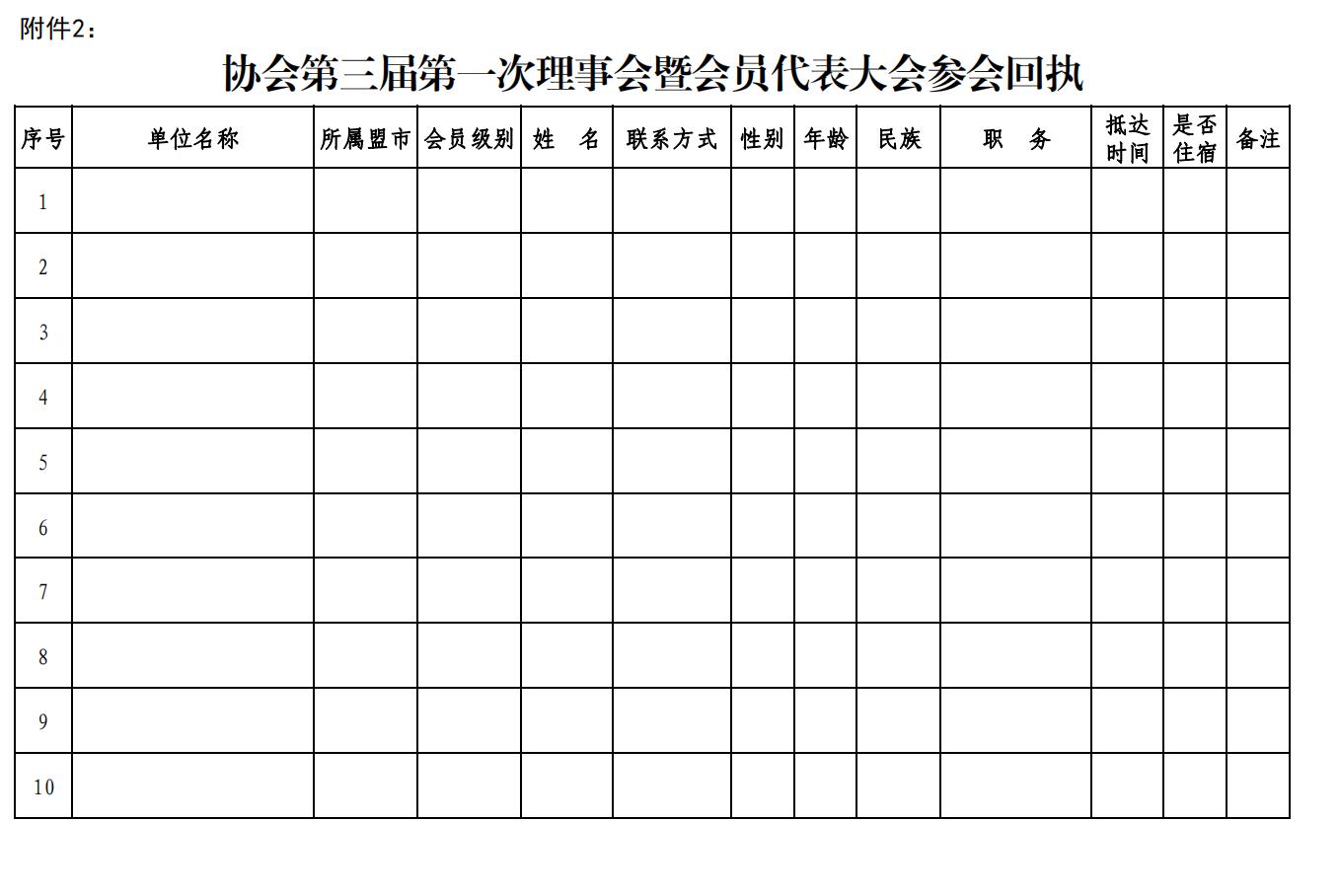 附件2:協(xié)會(huì)第三屆第一次理事會(huì)暨會(huì)員代表大會(huì)參會(huì)回執(zhí)