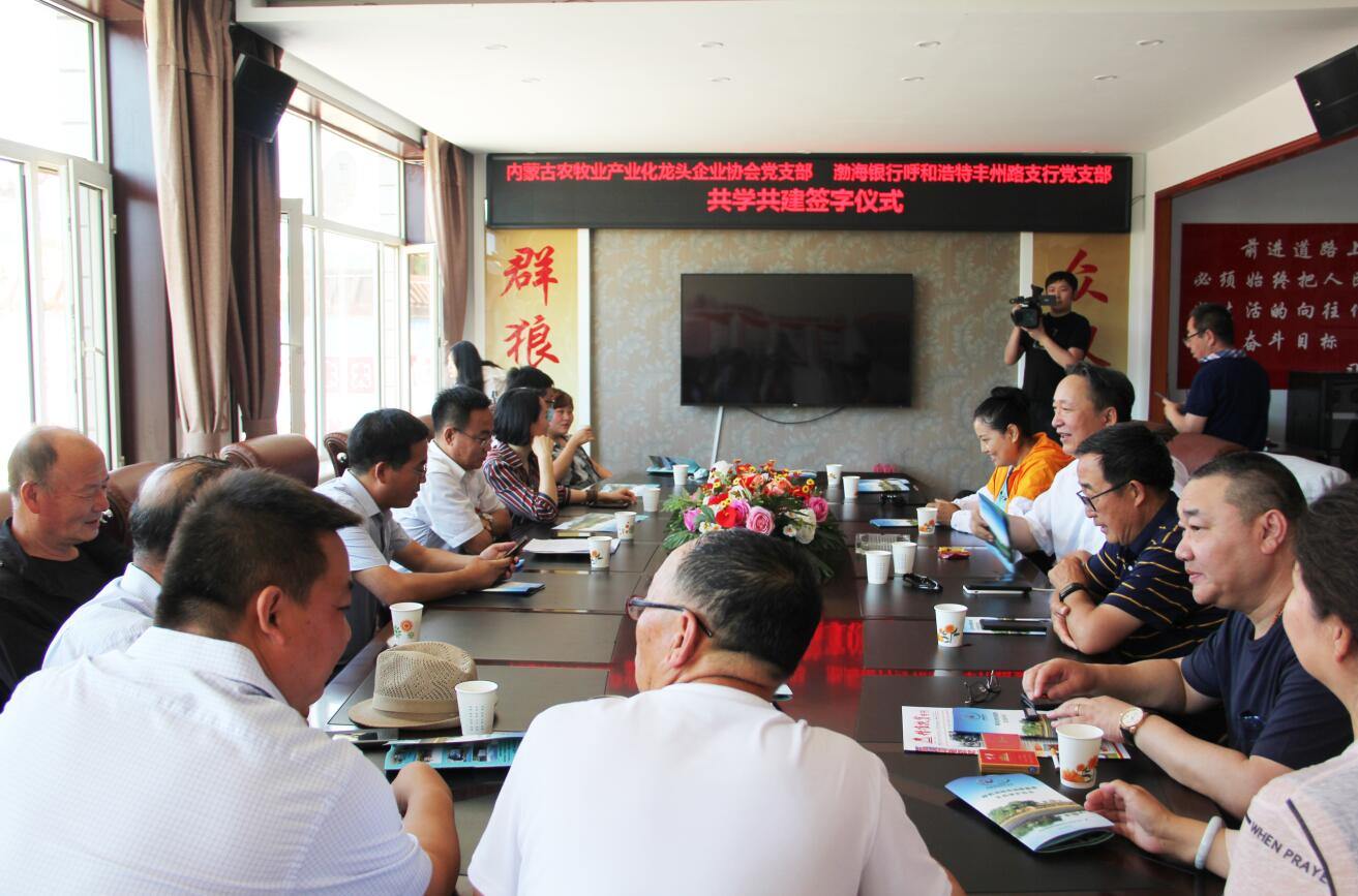 活動(dòng)過程中,為創(chuàng)造性地推進(jìn)黨組織“共學(xué)共建”結(jié)對(duì)工作,圍繞新時(shí)代黨的建設(shè)總要求,內(nèi)蒙古農(nóng)牧業(yè)產(chǎn)業(yè)化龍頭企業(yè)協(xié)會(huì)黨支部和渤海銀行呼和浩特豐州路支行黨支部簽訂了《共學(xué)共建結(jié)對(duì)協(xié)議》。通過結(jié)對(duì)共建,在弘揚(yáng)社會(huì)正能量、加強(qiáng)愛國主義教育等方面樹立新典型,力爭(zhēng)在構(gòu)建銀企合作關(guān)系等方面取得新突破。