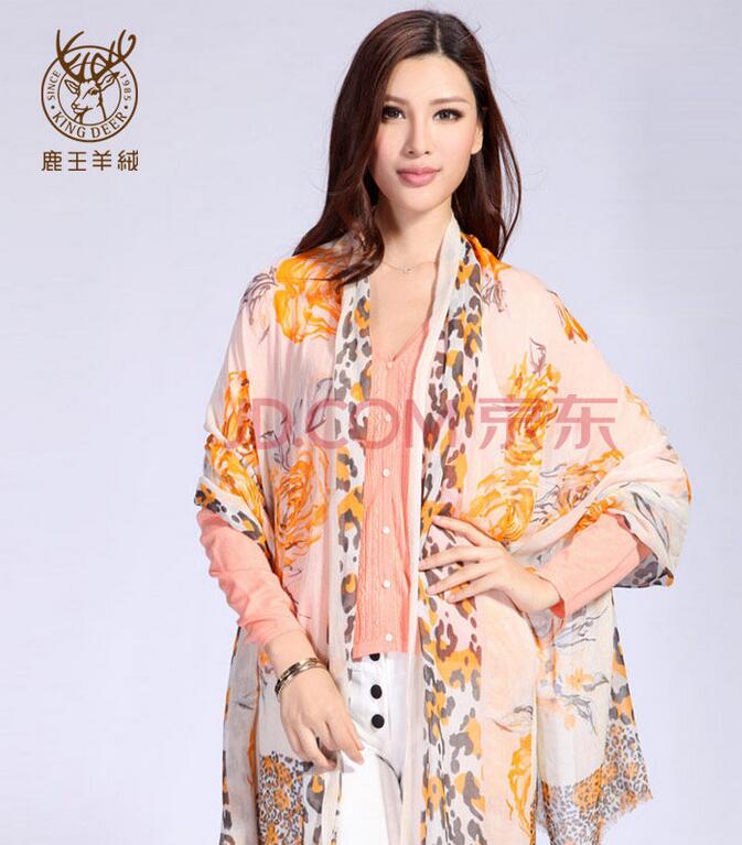 產(chǎn)品名稱:鹿王羊絨官方正品特價山羊絨女款豹紋披肩圍巾兩用薄款