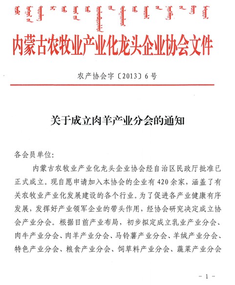 關(guān)于成立肉羊產(chǎn)業(yè)分會(huì)的通知