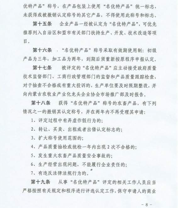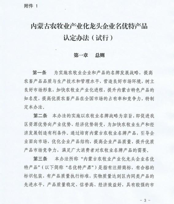關于印發(fā)《內蒙古農牧業(yè)產業(yè)化龍頭企業(yè)名優(yōu)特產品認定辦法》的通知