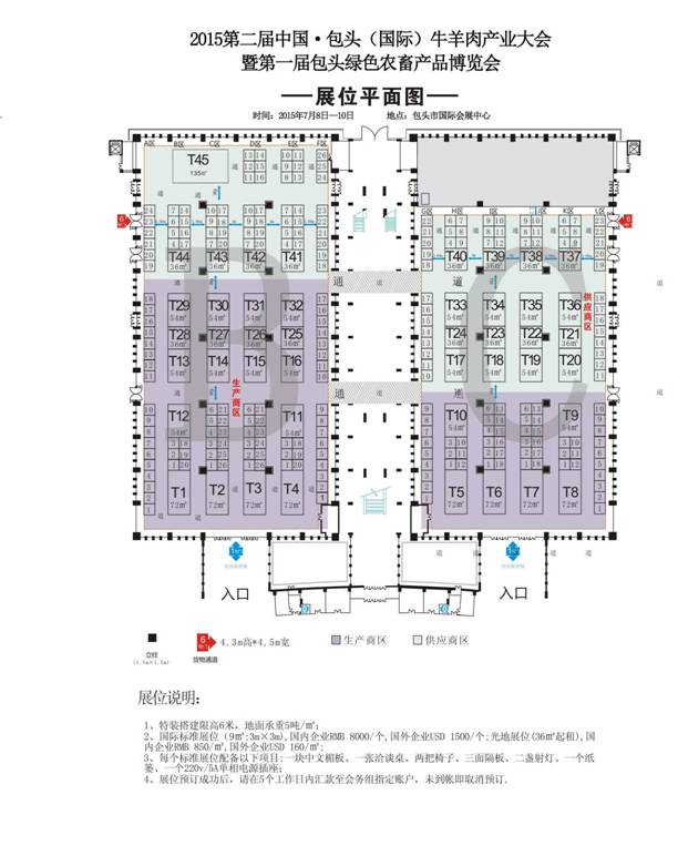 根據(jù)規(guī)劃,展館占地面積為10664平米。其中B館占地面積為5832平米可供搭建標(biāo)準(zhǔn)展位(3mX3m256個(gè),主要以國(guó)內(nèi)外牛羊肉生產(chǎn)加工企業(yè)、生產(chǎn)加工設(shè)備、包裝技術(shù)、冷鏈服務(wù)、各地區(qū)集體參展、獸醫(yī)獸藥、圈舍舍建設(shè)、飼草、金融服務(wù)機(jī)構(gòu)、品牌營(yíng)銷機(jī)構(gòu)等企業(yè)為主導(dǎo)。C館占地面積4832平米,可供搭建標(biāo)準(zhǔn)展位(3mX3m229個(gè),主要以包頭市轄內(nèi)各農(nóng)牧業(yè)企業(yè)等參展單位為主。