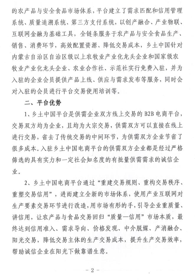 關(guān)于入駐鄉(xiāng)土中國(guó)首家安全食品產(chǎn)業(yè)電商平臺(tái)的通知