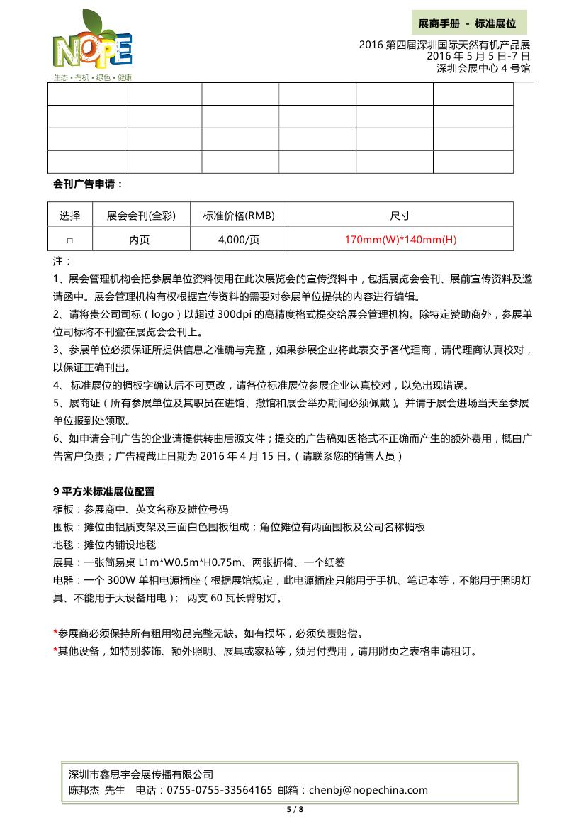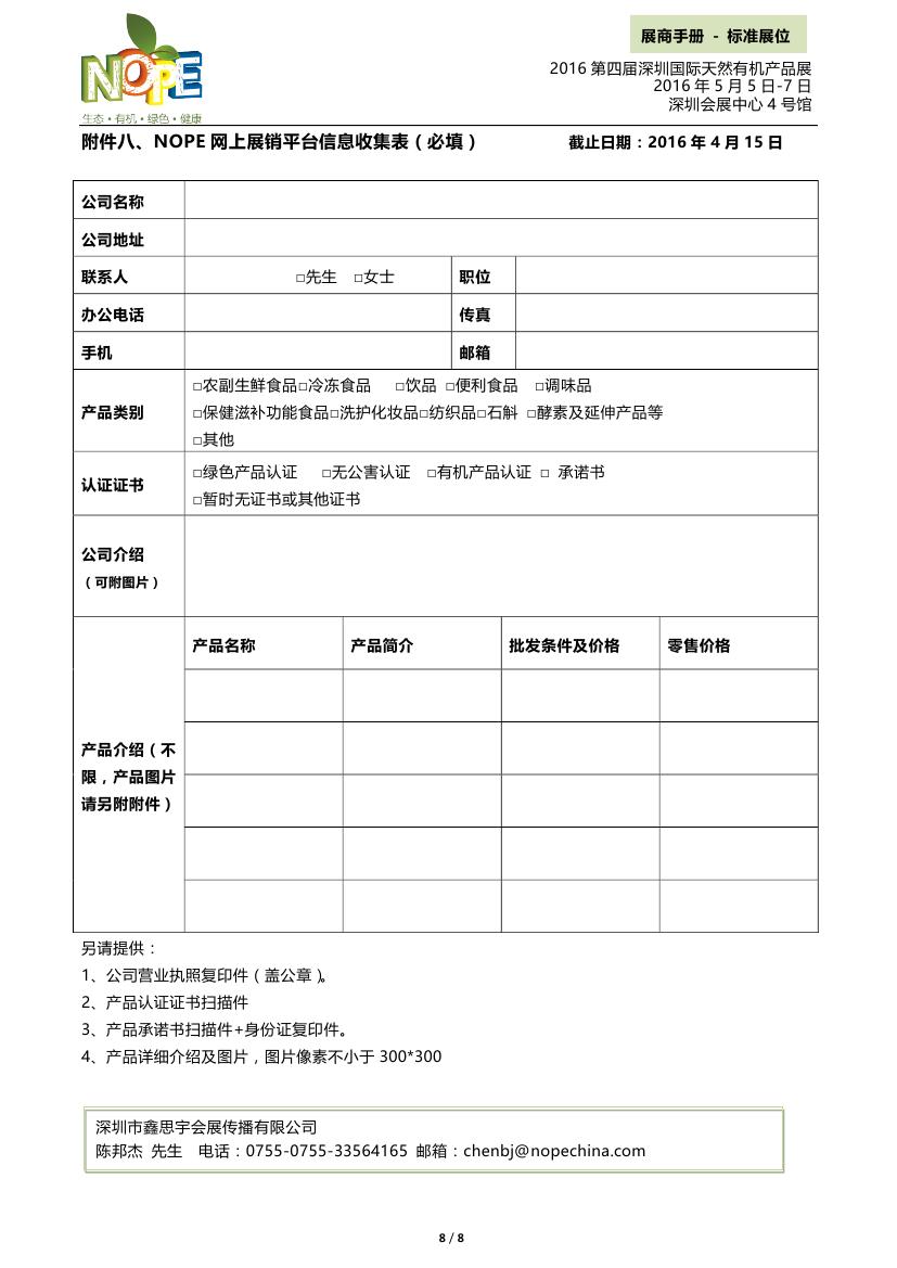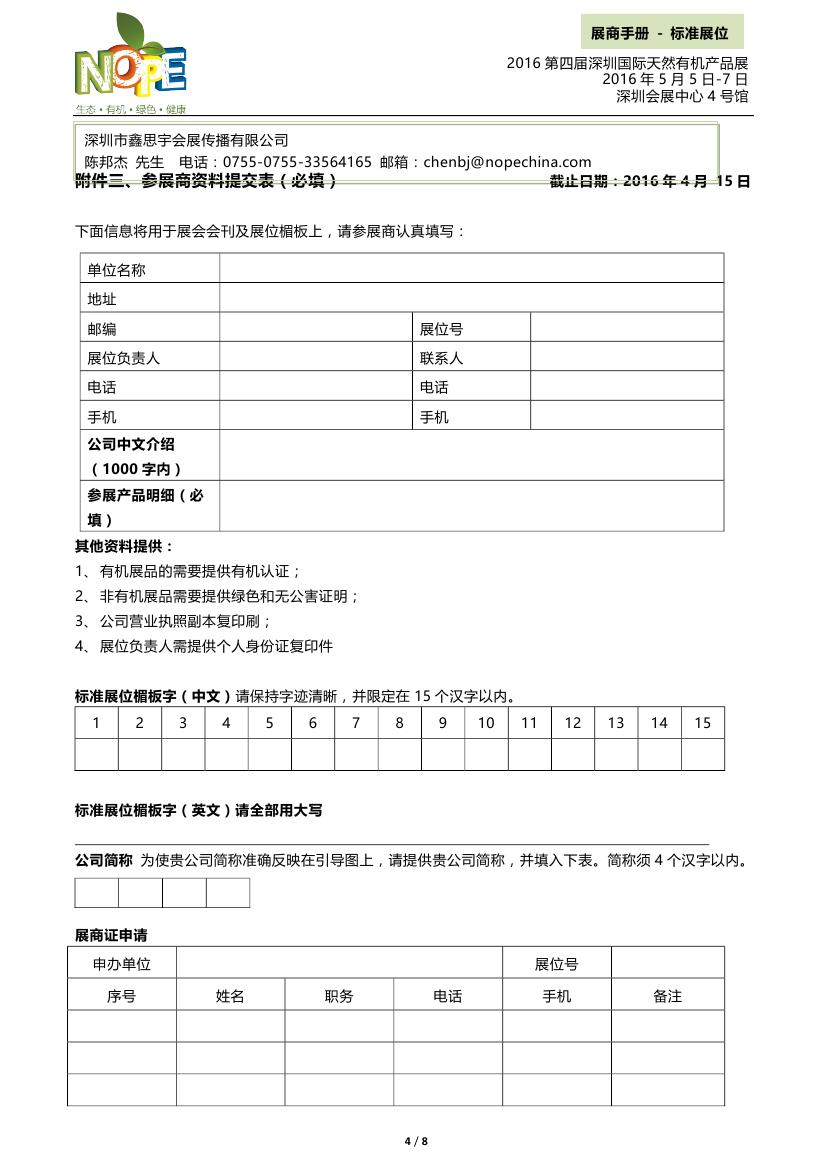 附件1:標(biāo)準(zhǔn)展位必填-2016第四屆深圳國(guó)際天然有機(jī)產(chǎn)品展-XXX公司名.doc