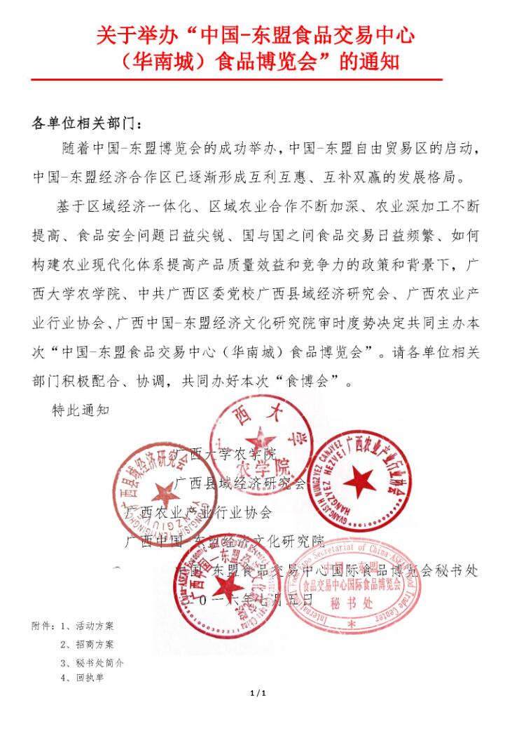 關(guān)于舉辦“中國-東盟食品交易中心(華南城)食品博覽會”的通知