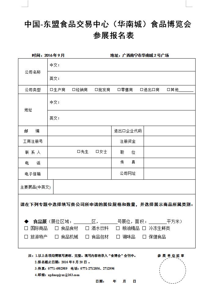 附件4.中國-東盟食品交易中心(華南城)食品博覽會報名表