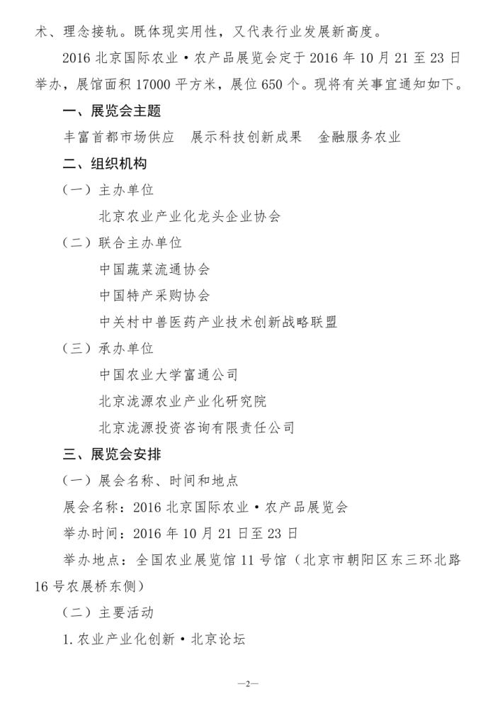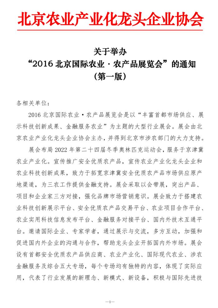 關(guān)于舉辦“2016北京國際農(nóng)業(yè)·農(nóng)產(chǎn)品展覽會(huì)”的通知