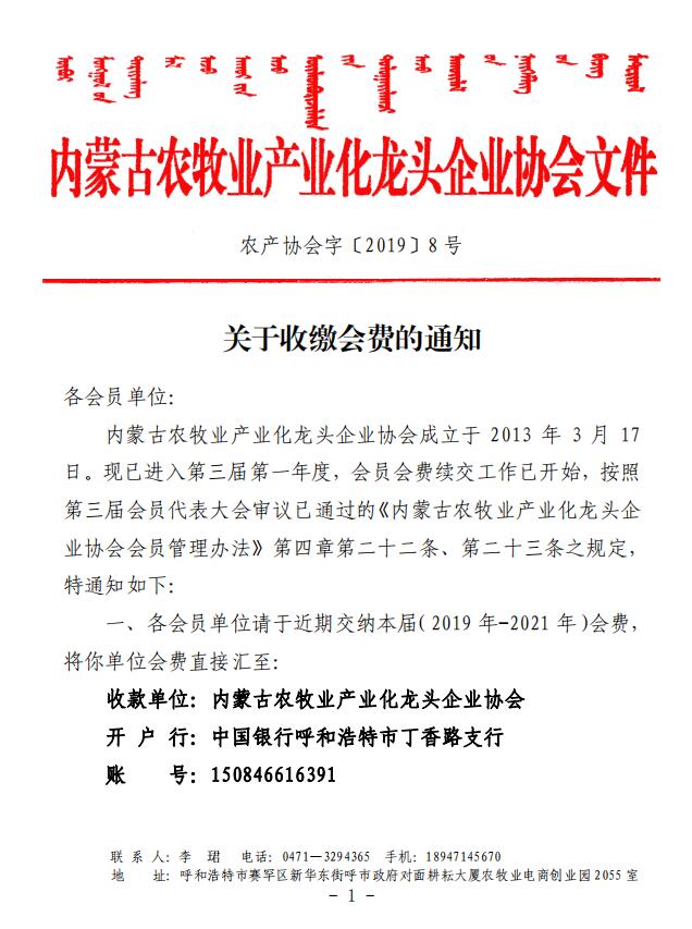 農(nóng)產(chǎn)協(xié)會字[2019]8號 關(guān)于收繳會費的通知