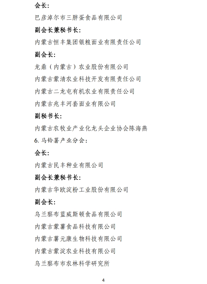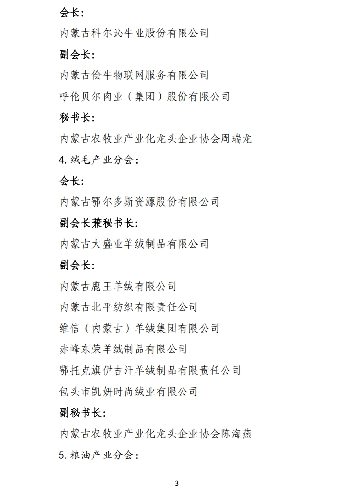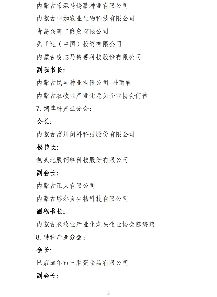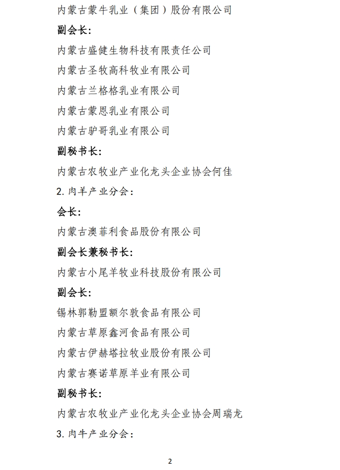 關于第五屆內蒙古農牧業(yè)產業(yè)化龍頭企業(yè)協(xié)會各行業(yè)分會調整的通知
