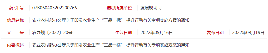 農(nóng)業(yè)農(nóng)村部辦公廳關(guān)于印發(fā)農(nóng)業(yè)生產(chǎn)“三品一標(biāo)” 提升行動(dòng)有關(guān)專項(xiàng)實(shí)施方案的通