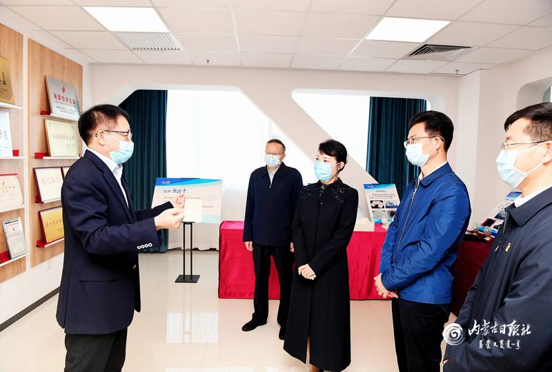 9月16日,自治區(qū)黨委副書記、自治區(qū)主席王莉霞在內(nèi)蒙古衛(wèi)數(shù)數(shù)據(jù)科技公司調(diào)研。內(nèi)蒙古日?qǐng)?bào)社融媒體記者 韓卿立 攝